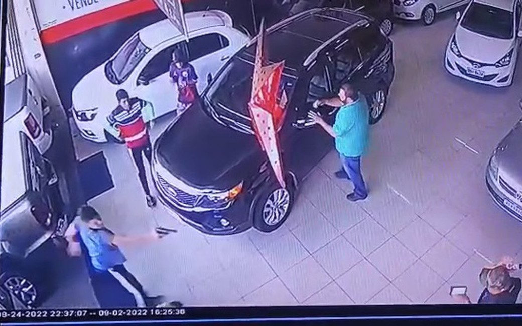 Criminoso envade revendedora de veículos termina com funcionário morto e proprietário baleado.