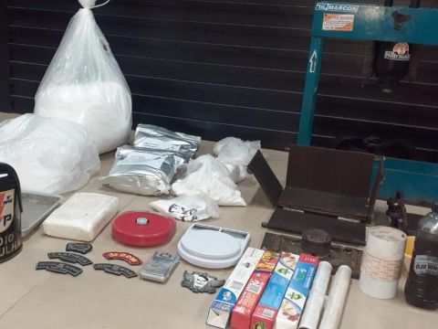 Os policiais encontraram ainda balanças de precisão, 2,8 kg de sorbato de potássio, óleo minela e uma prensa hidráulica. Ninguém foi preso.