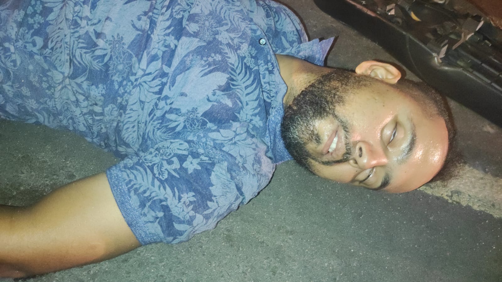 O condutor que apresentava sinais de embriaguez, perdeu o controle da direção e não viu o quebra-molas e caiu da moto. Com o impacto, ele sofreu escoriações na cabeça.