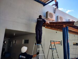 “Estamos iniciando hoje a instalação completa do sistema de videomonitoramento, que funciona 24h. Neste sistema também consta cercamento de toda a escola, com alarmes e sensores de barreira, onde qualquer tipo de violação acionamos um protocolo imediato para que as forças policiais possam tomar as medidas necessárias. Outro ponto importante neste sistema é o reconhecimento facial, em que a partir da sua instalação, só terão acesso às dependências das unidades quem estiver cadastrado. Então, toda escola será monitorada 24 horas, com um moderno sistema de segurança”, explicou Thiago Duarte, representante da empresa Teltex.