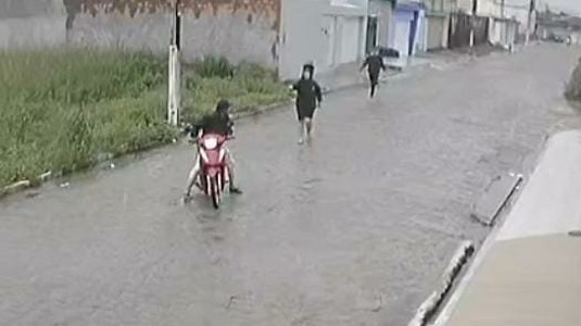 Uma gravação feita por uma câmera de monitoramento mostra um dos assaltantes seguindo por aproximadamente 200 metros em uma moto sem perceber que a vítima estava na garupa.
