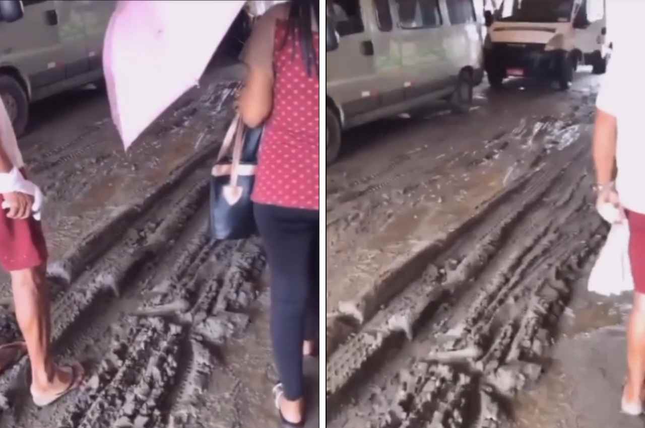 Alagoas Destaques Em União dos Palmares População enfrenta lama para embarque na rodoviária de União dos Palmares.