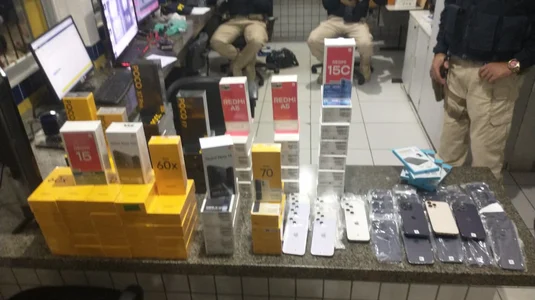 Polícia apreende mais de 100 celulares e quase 540 telas de smartphones em ônibus na BR-101, em São Sebastião.