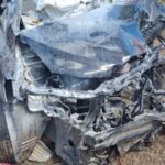 Imagens registradas por populares mostram a vítima ainda dentro do veículo de passeio, que ficou completamente destruído após o impacto.